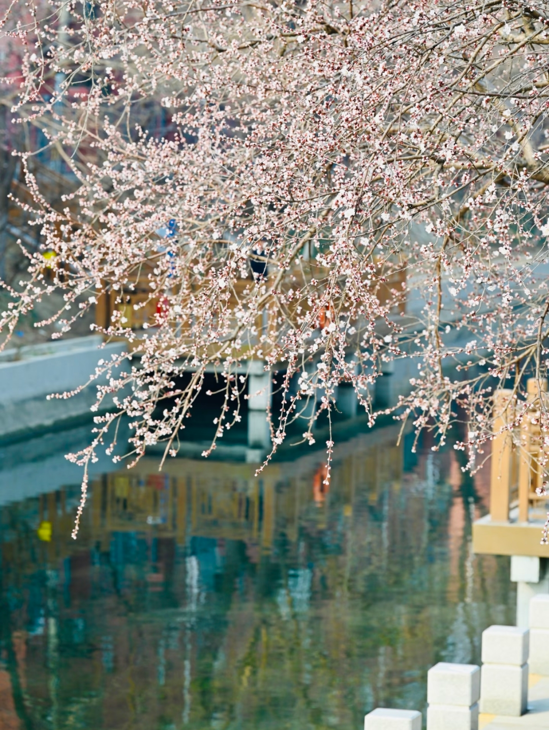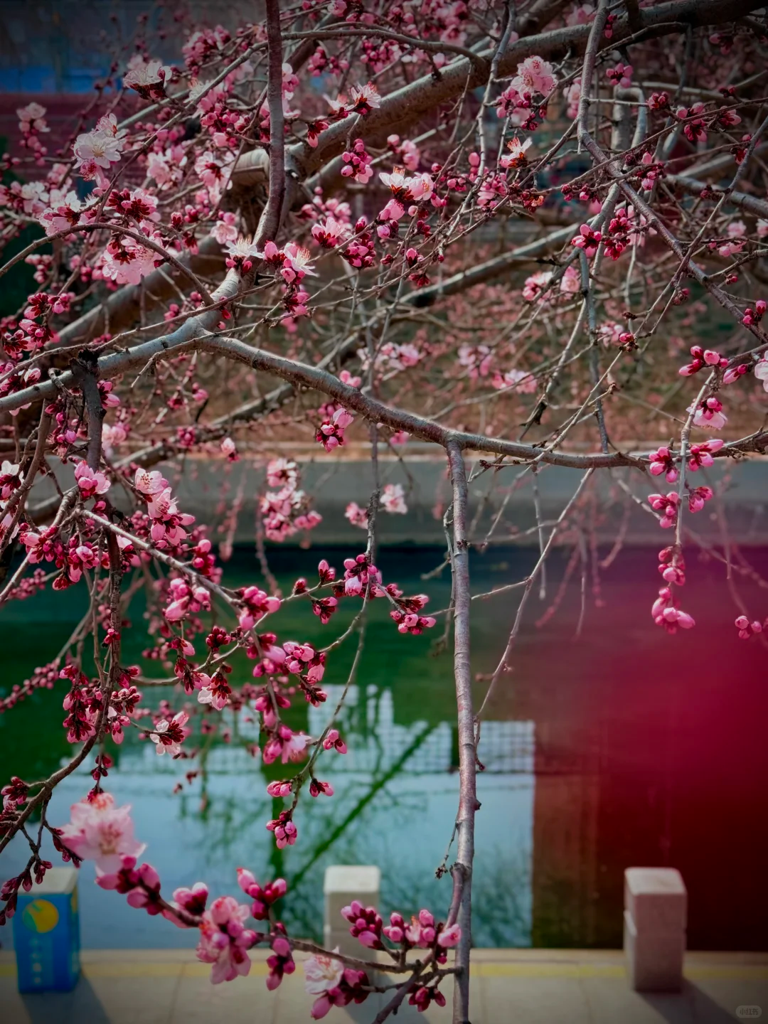 亮点:人少清净,视野开阔,适合俯拍河道全景与两岸花带,长焦拍摄对岸桃花+流水的画面很雅致。